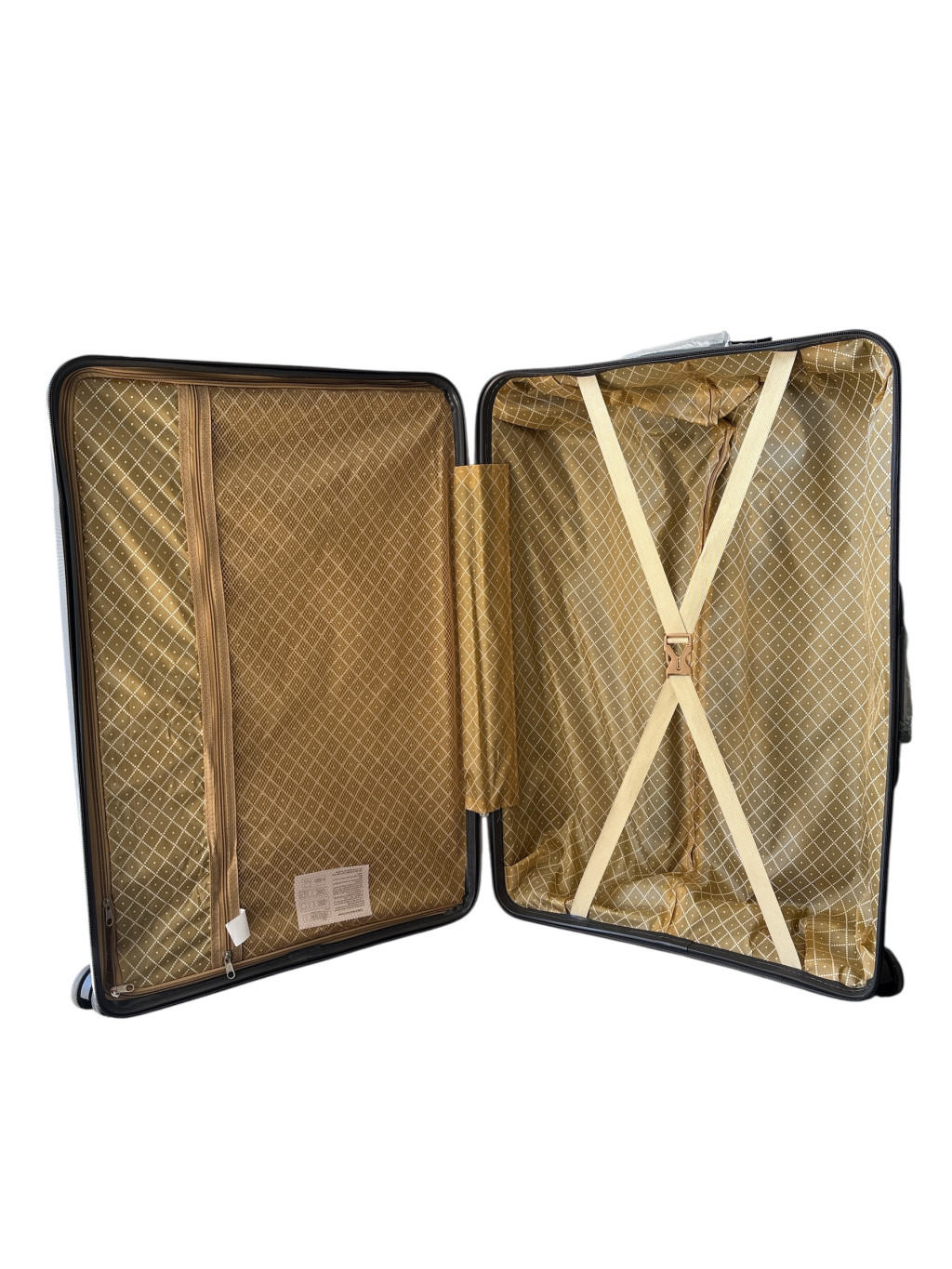 A bőrönd rendelkezik zipzáros elválasztóval, és pántolással.