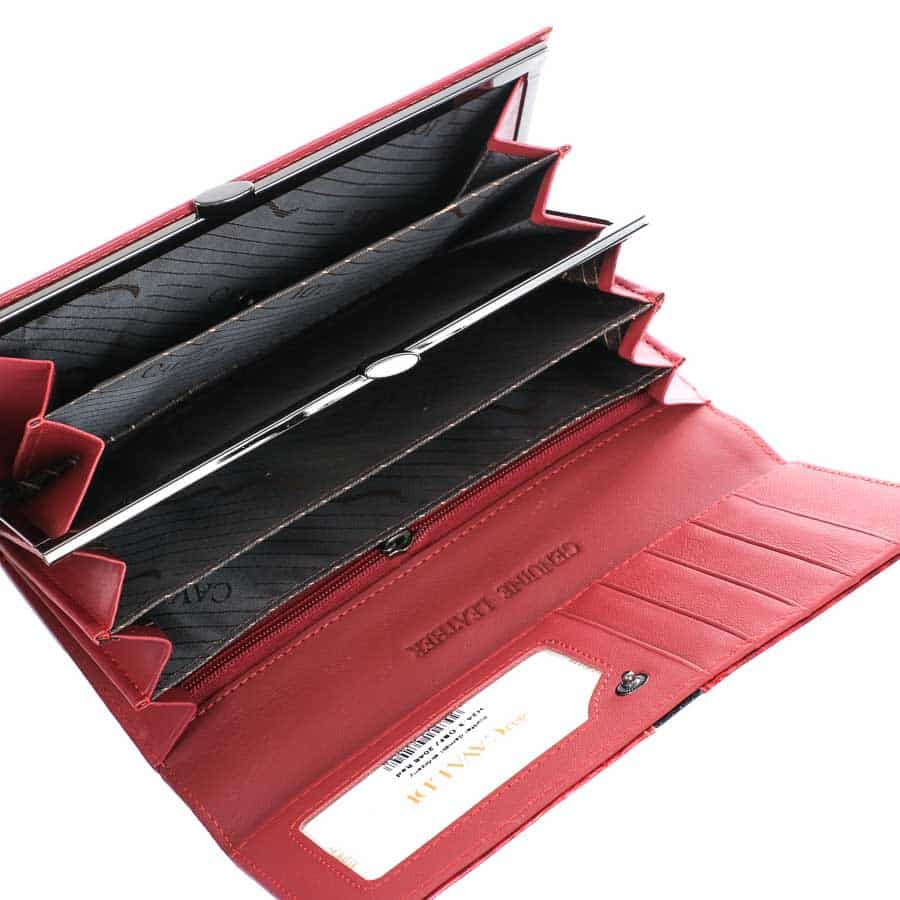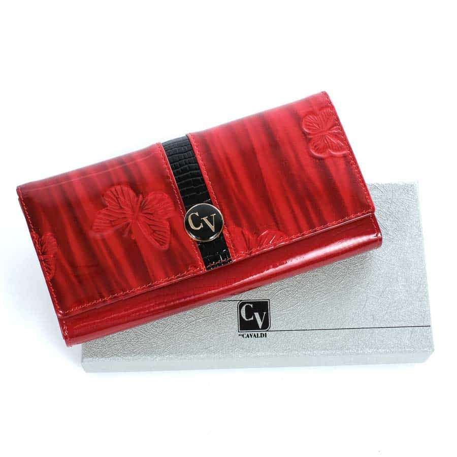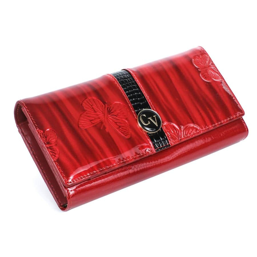 Elegáns női valódi lakk bőr pénztárca, piros színben.